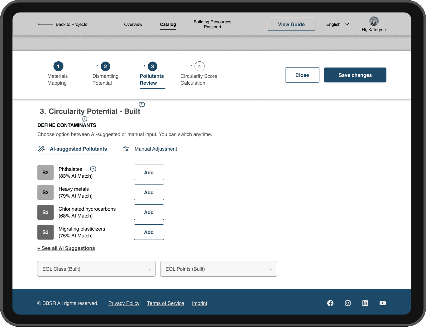 I led a cross-functional team of six to help both experts and non-experts navigate the circularity assessment process faster and with more confidence, introducing AI-driven assistance for pollutant selection and a clearer, more approachable interface.