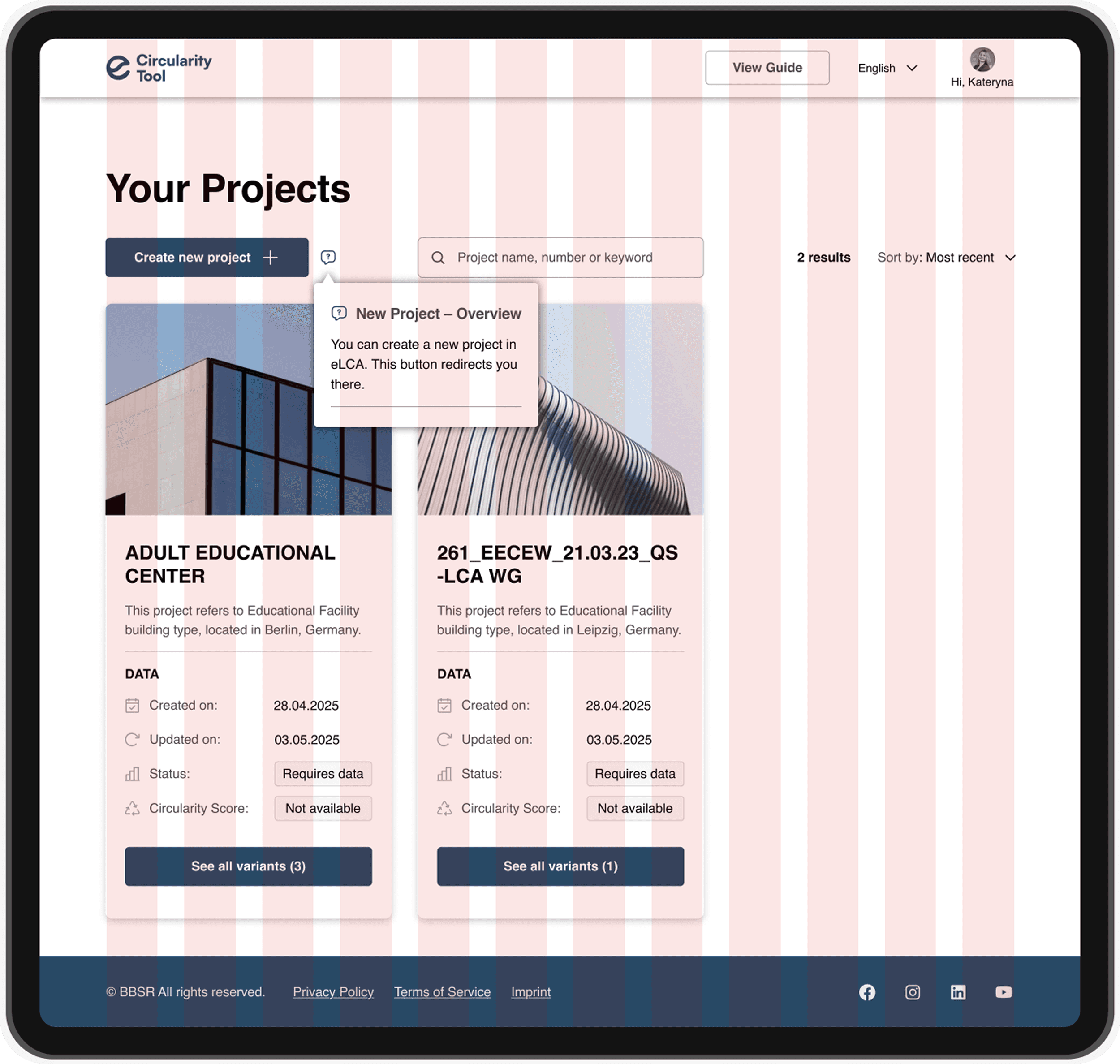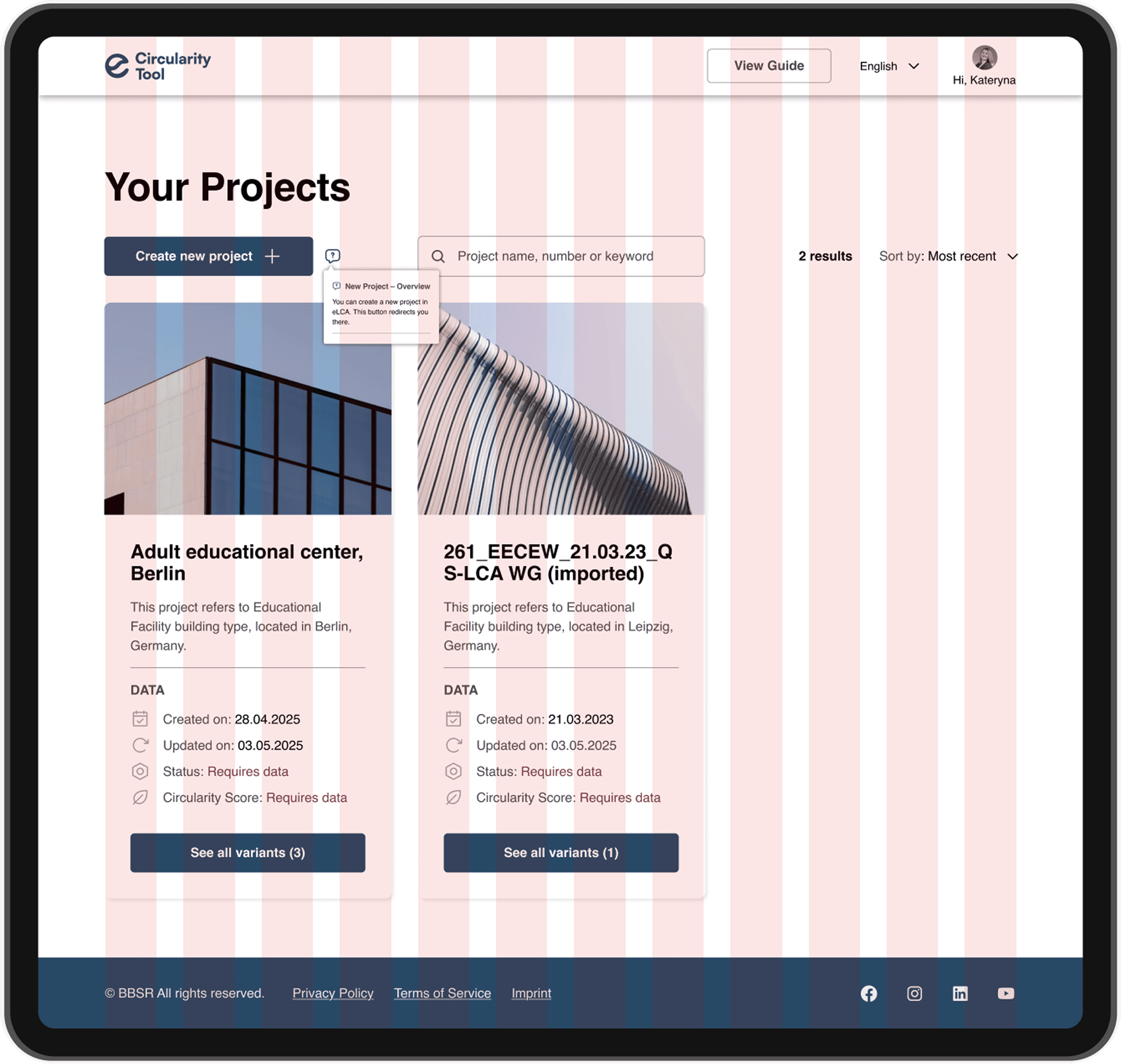 Established a clear connection between eLCA and the Circularity Tool by introducing the new “Create new project” button, a key bridge that directs users to initiate projects in eLCA, while all Circularity Score calculations are handled within the Circularity Tool