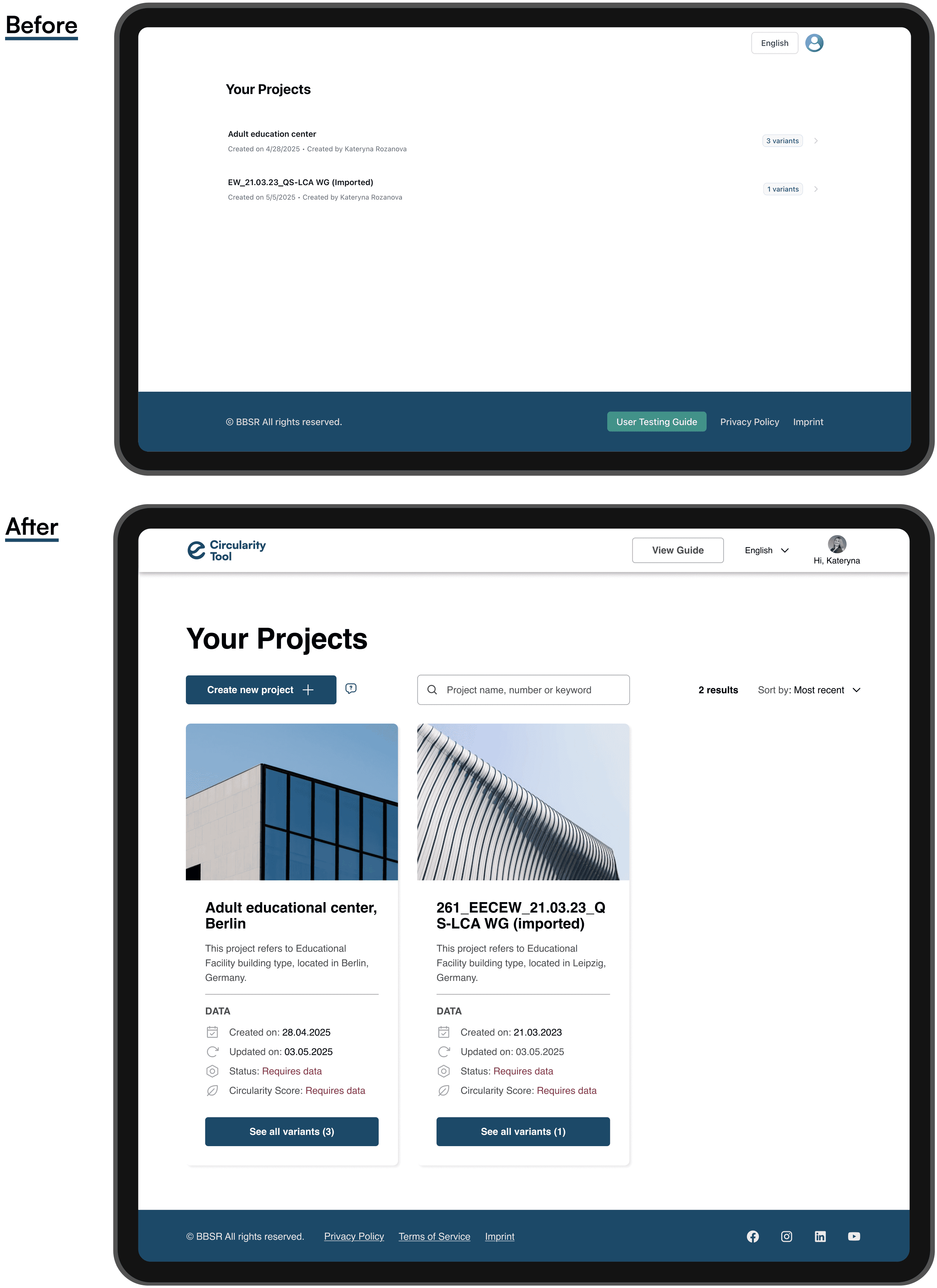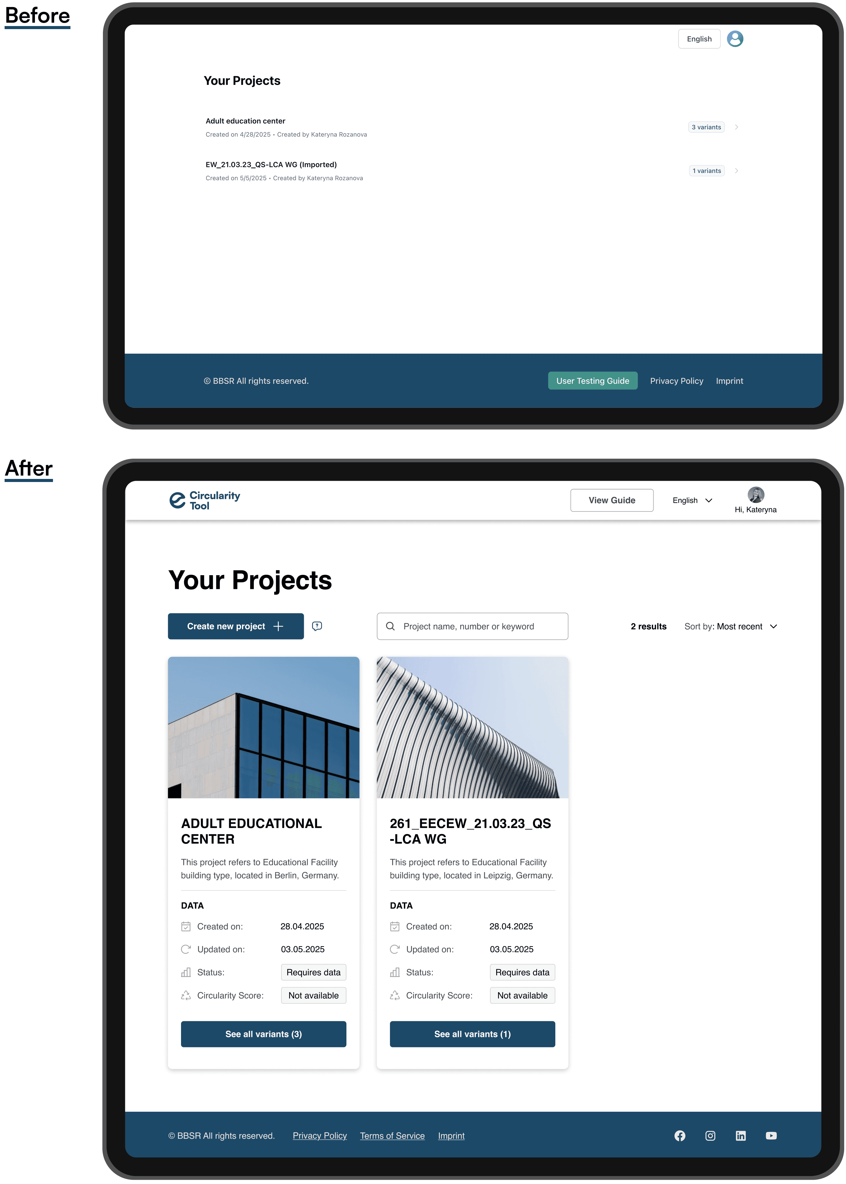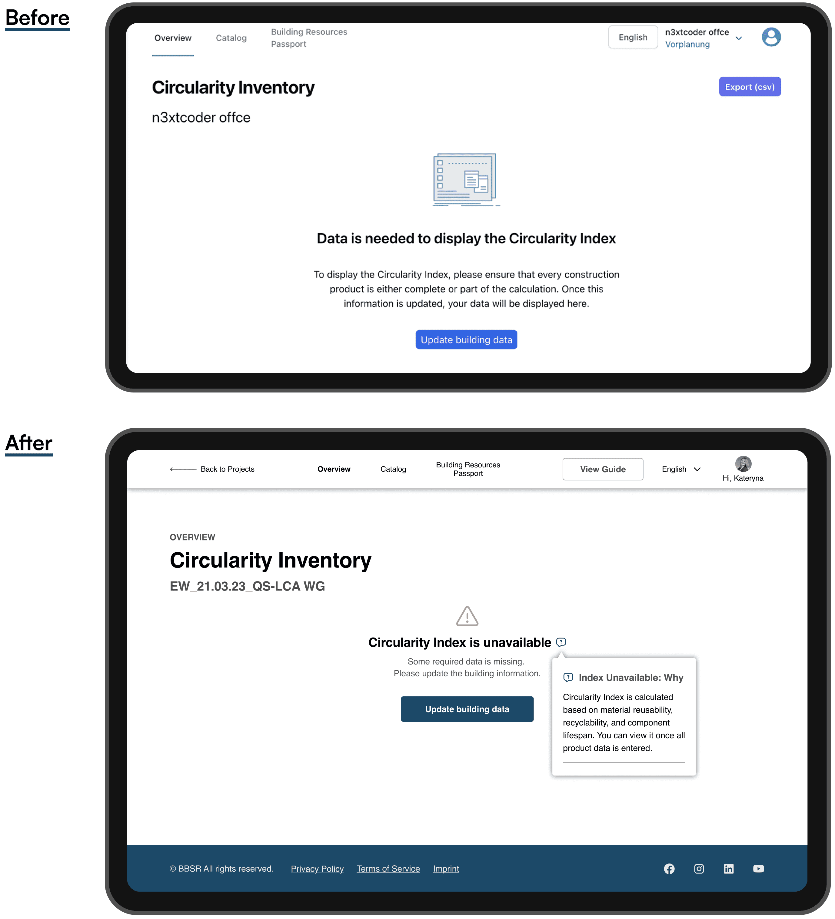These UX improvements aligned the tool’s structure with real-life workflows in sustainability assessment, making decisions faster, interactions more intuitive, and the experience more confident and human.