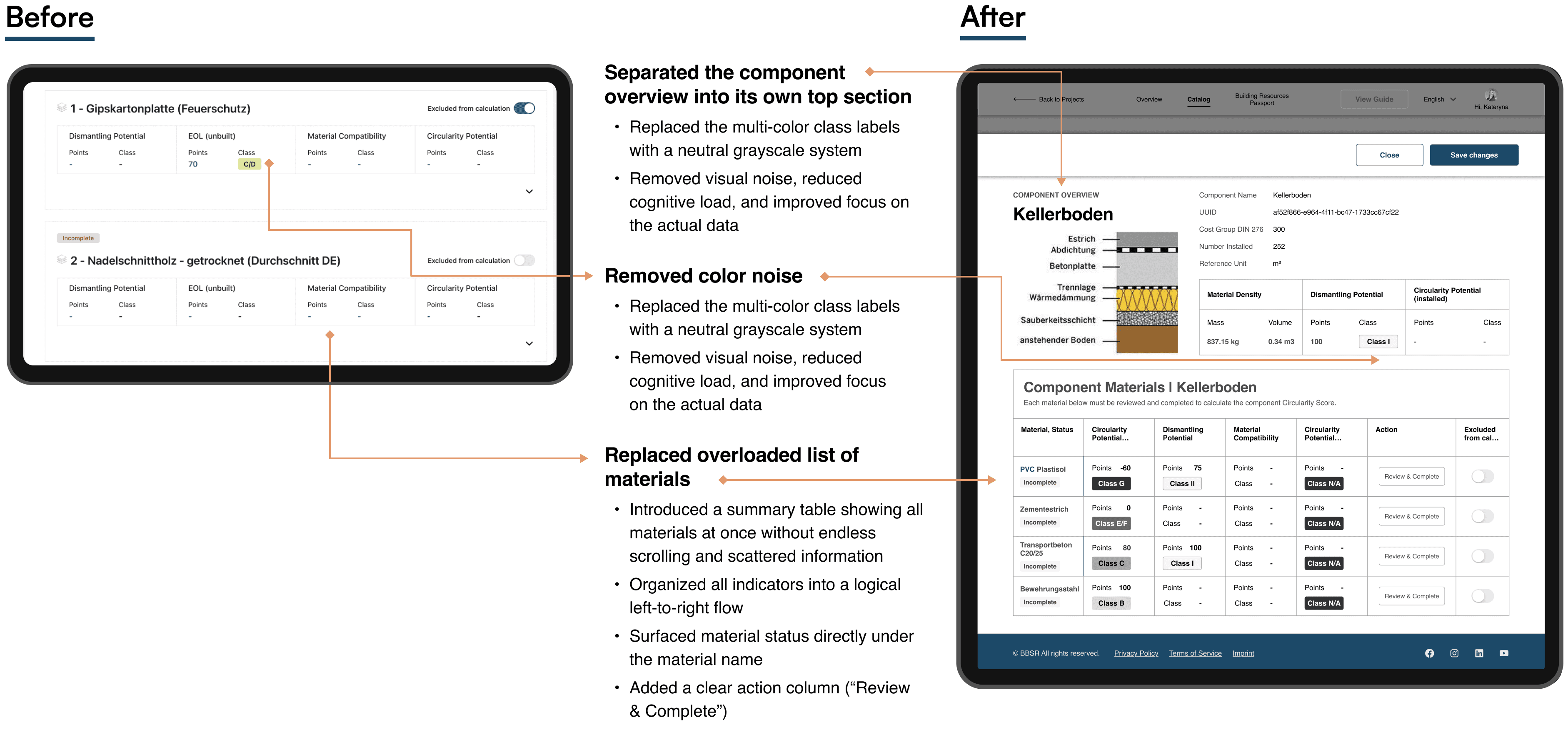 This structured approach didn’t reinvent the system, but made it clearer, more traceable and less cognitively demanding, especially for users who are not circularity experts.