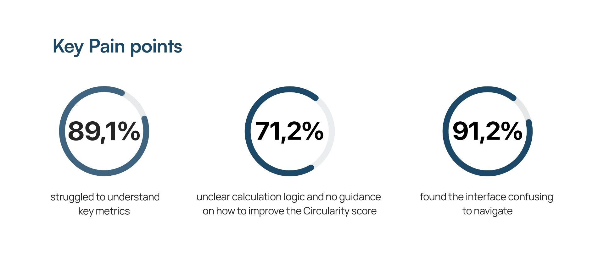 Circularity assessment involves dense technical data, unclear terminology, and multi-step expert workflows. As a result, users often struggle to understand system logic, interpret indicators correctly, and trust the output when making real-world decisions.