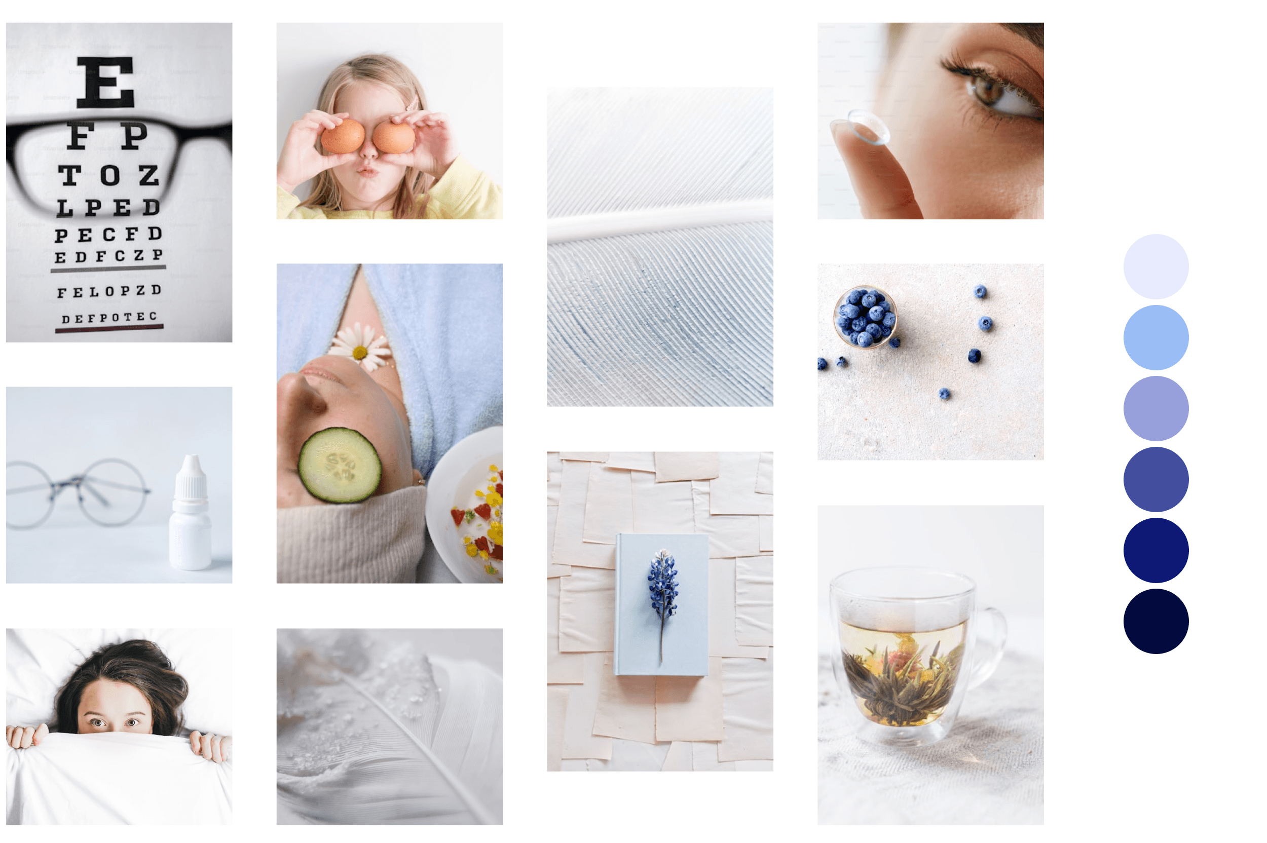 To stand out in a crowded market of bright green and orange tones, I chose a calm, blue-toned palette that supports clarity and emotional comfort. Blue evokes trust, balance, and calm, reinforcing SeeBetter’s identity as a reliable, user-centered solution for daily vision care.