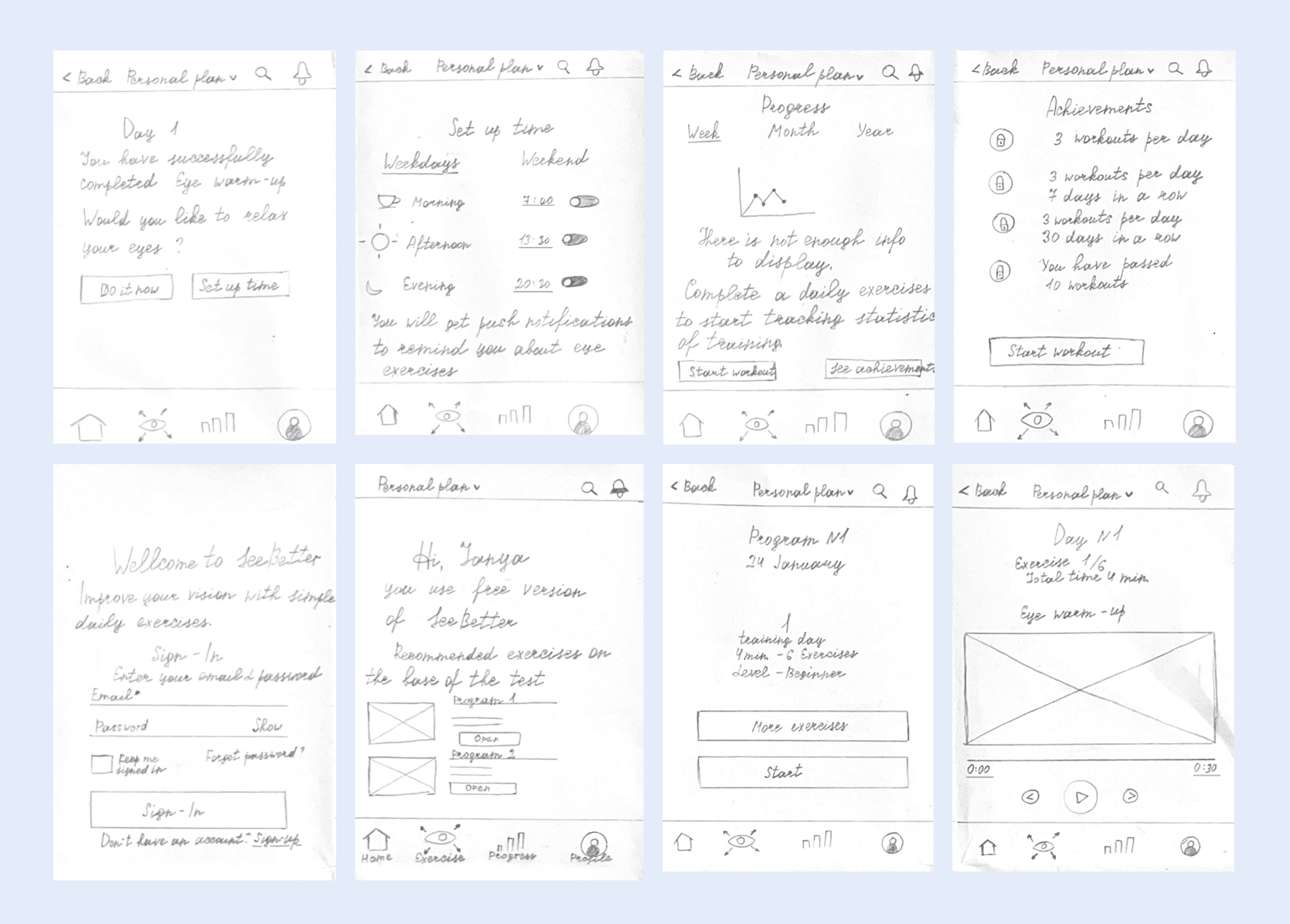The project was completed in a 2-week sprint, focusing on visual clarity, emotional ease, and daily motivation to care for one’s eyes in a tech-heavy world.