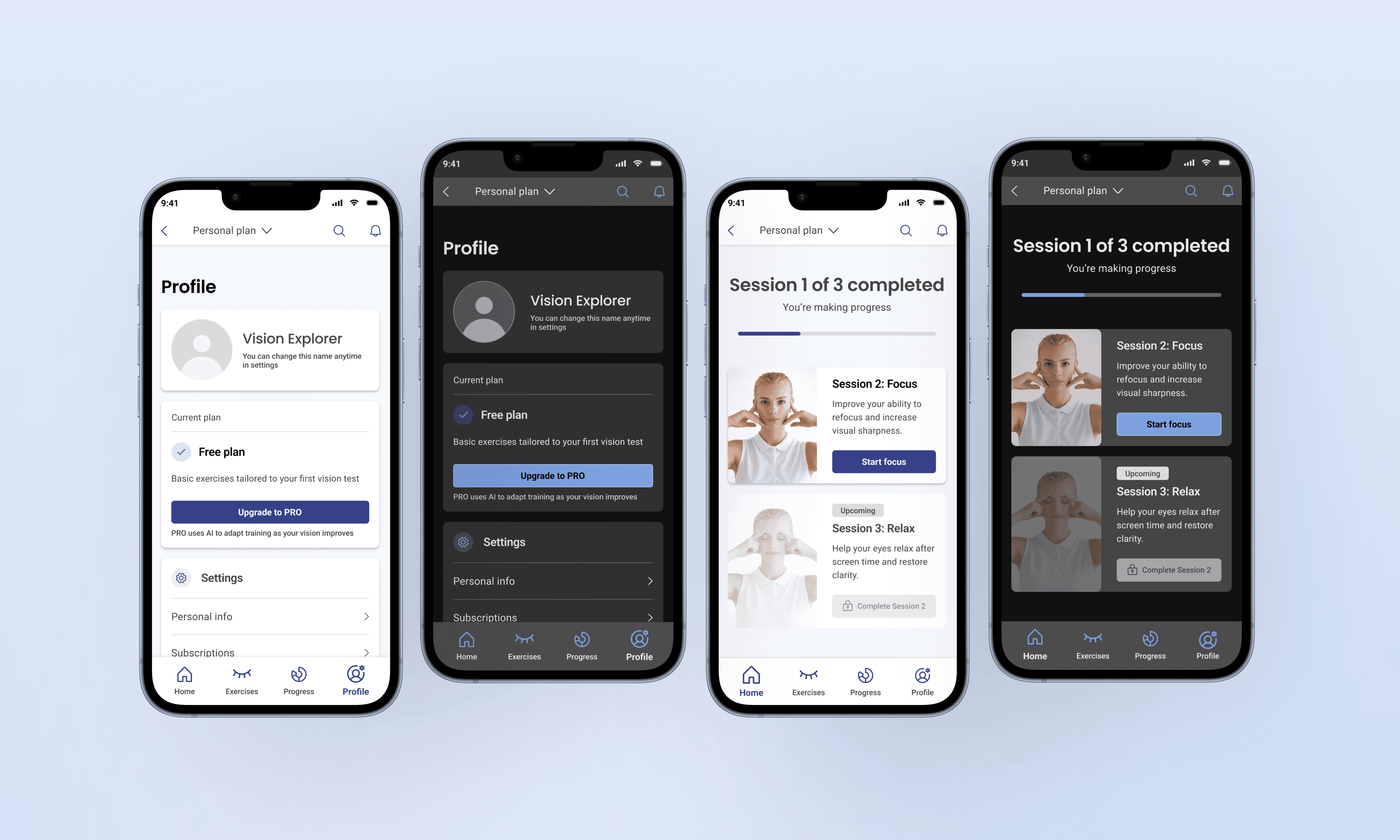 The product softly guides users through onboarding, vision assessment, and personalized training, allowing trust to form before any monetization is introduced.