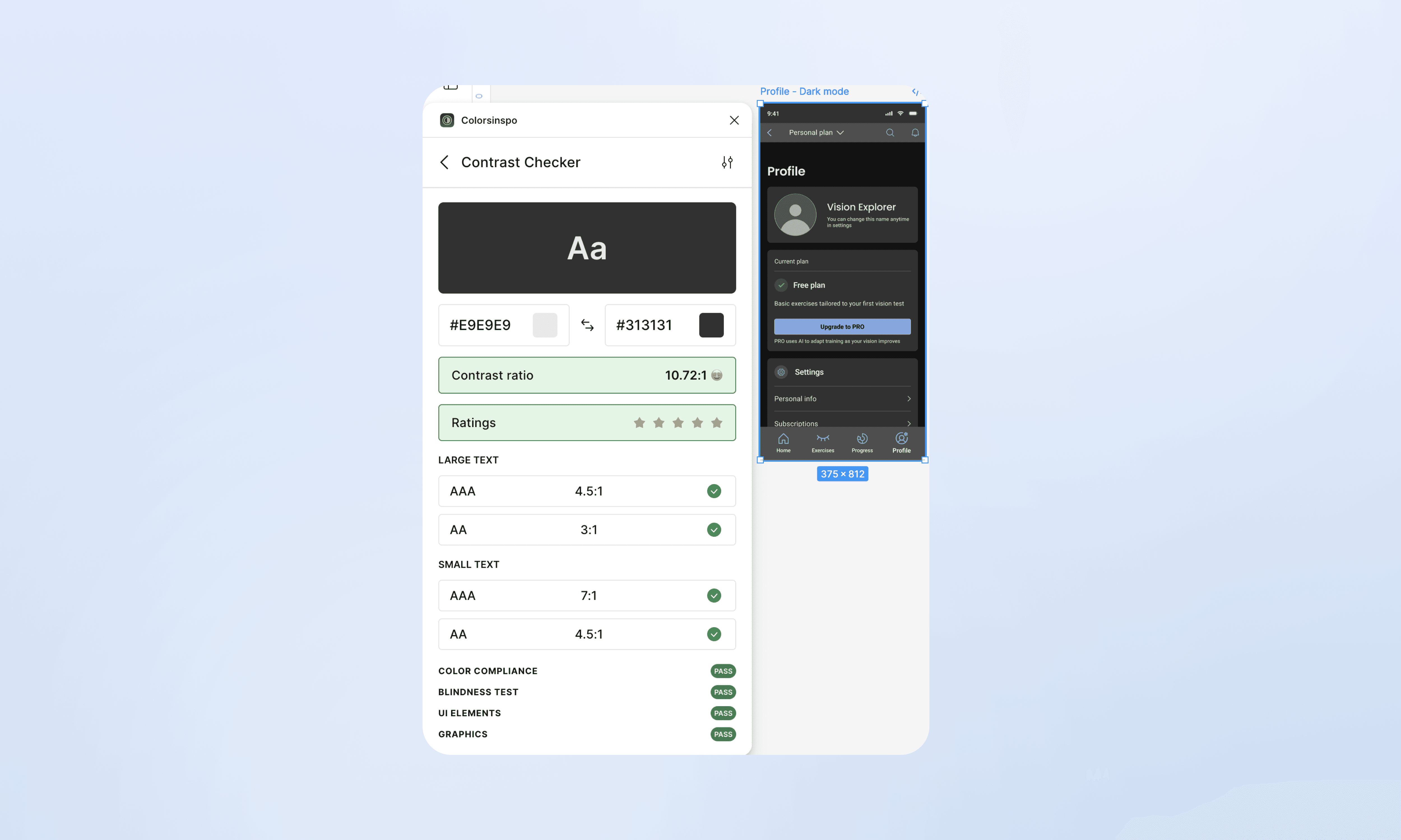 Both light and dark themes were checked using accessibility tools to ensure: