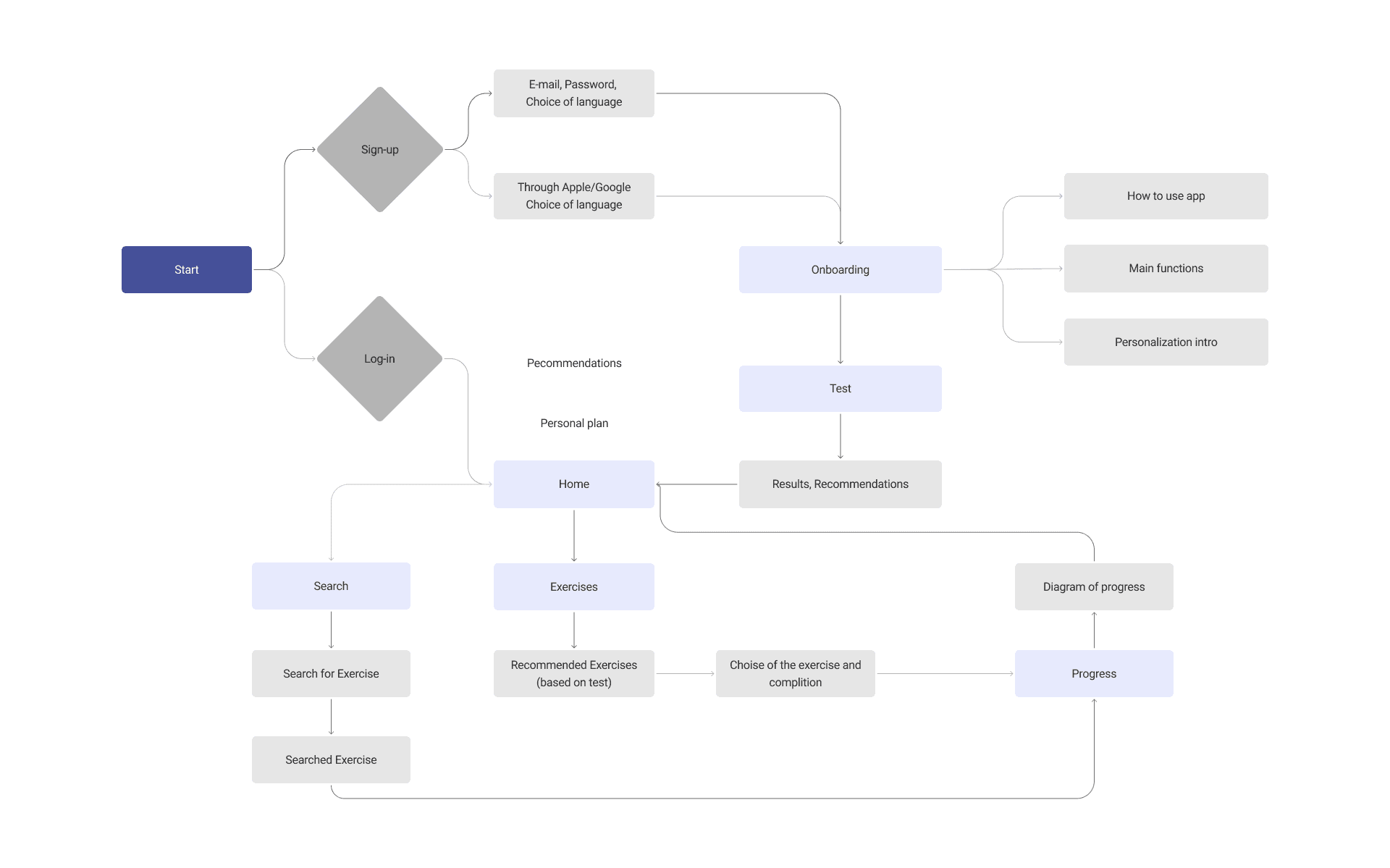 To address onboarding challenges uncovered in the research phase, I designed the user flow with first-time users in mind, prioritizing clarity, ease, and personalization.