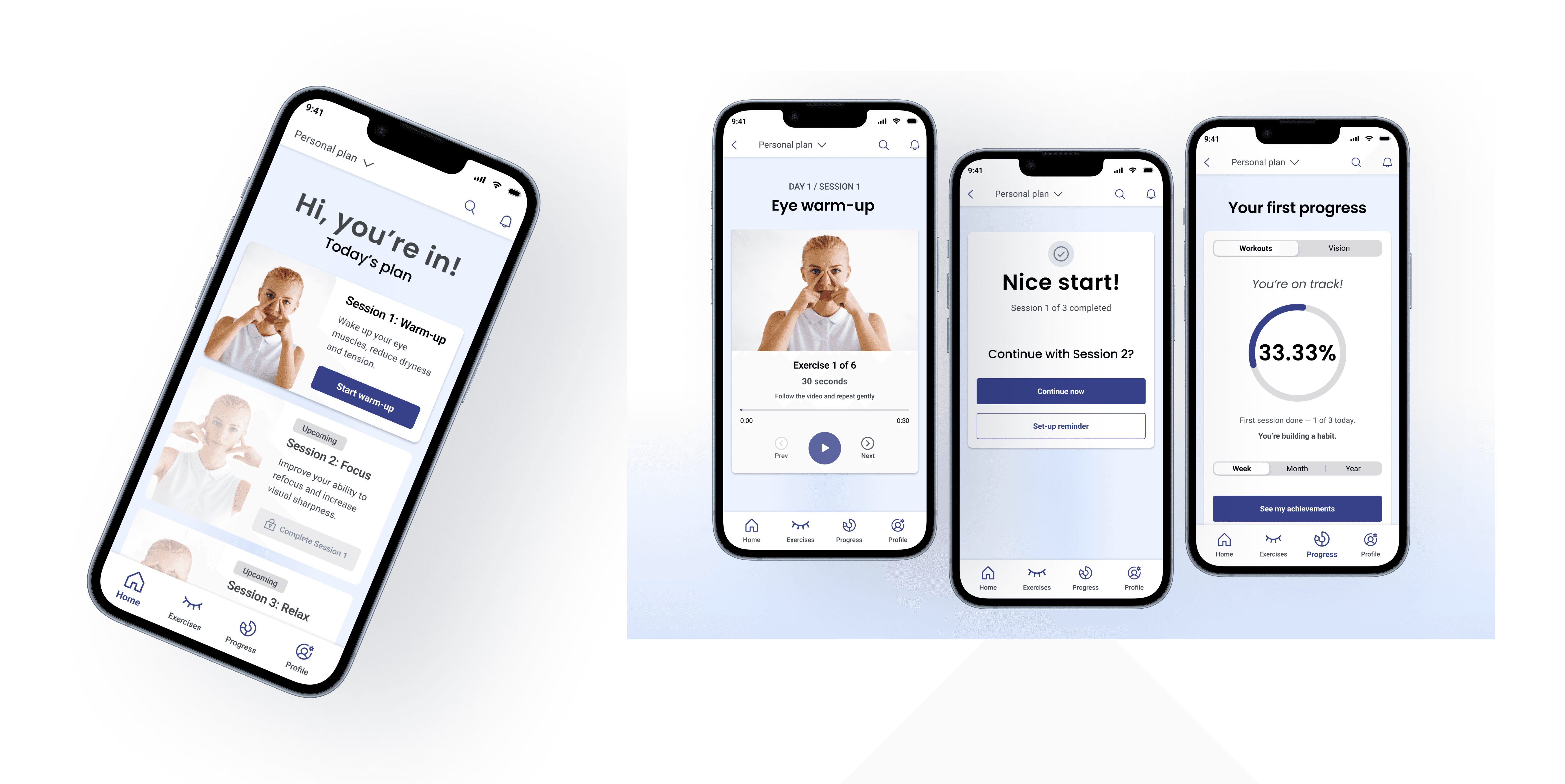 The core challenge of this project wasn’t creating eye exercises — it was designing an experience that users feel safe, confident, and motivated to engage with from the very first interaction.